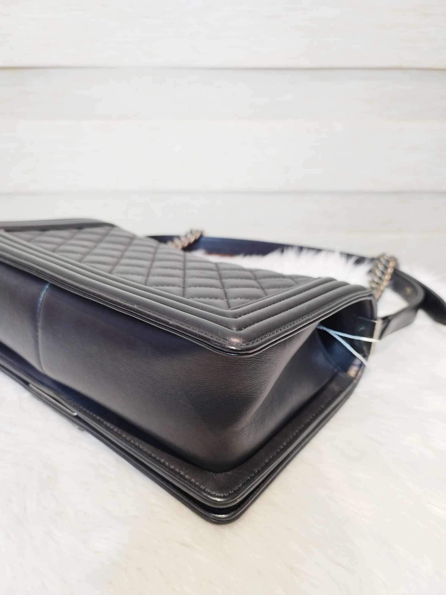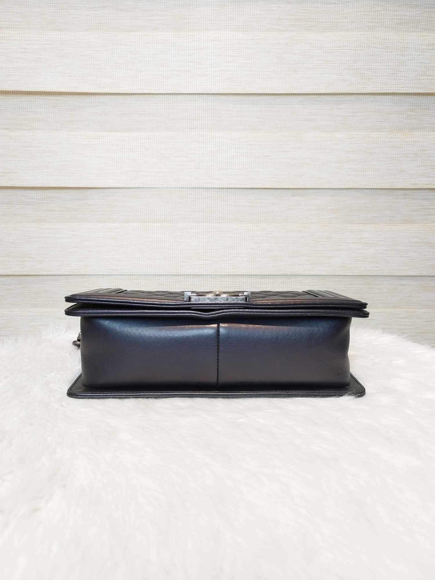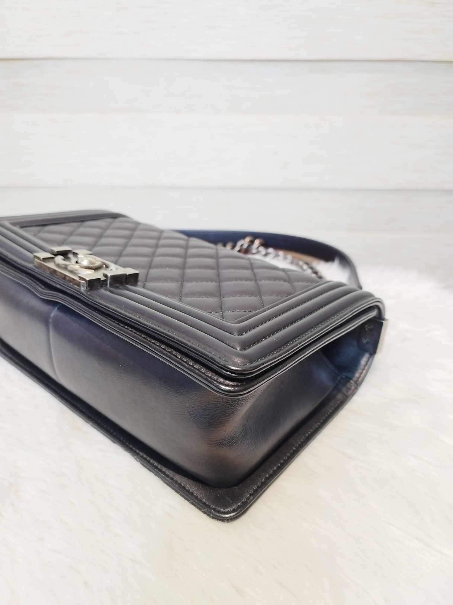 Description: Chanel Le Boy Black Old Medium Ruthenium Hardware Series 20 with hologram, authenticity card, receipt, dust bag, care booklet, and box in Excellent Condition 9/10 😊💜