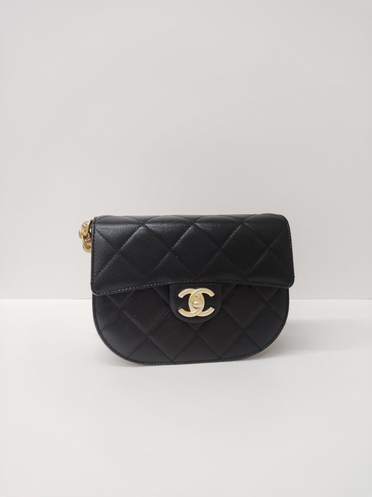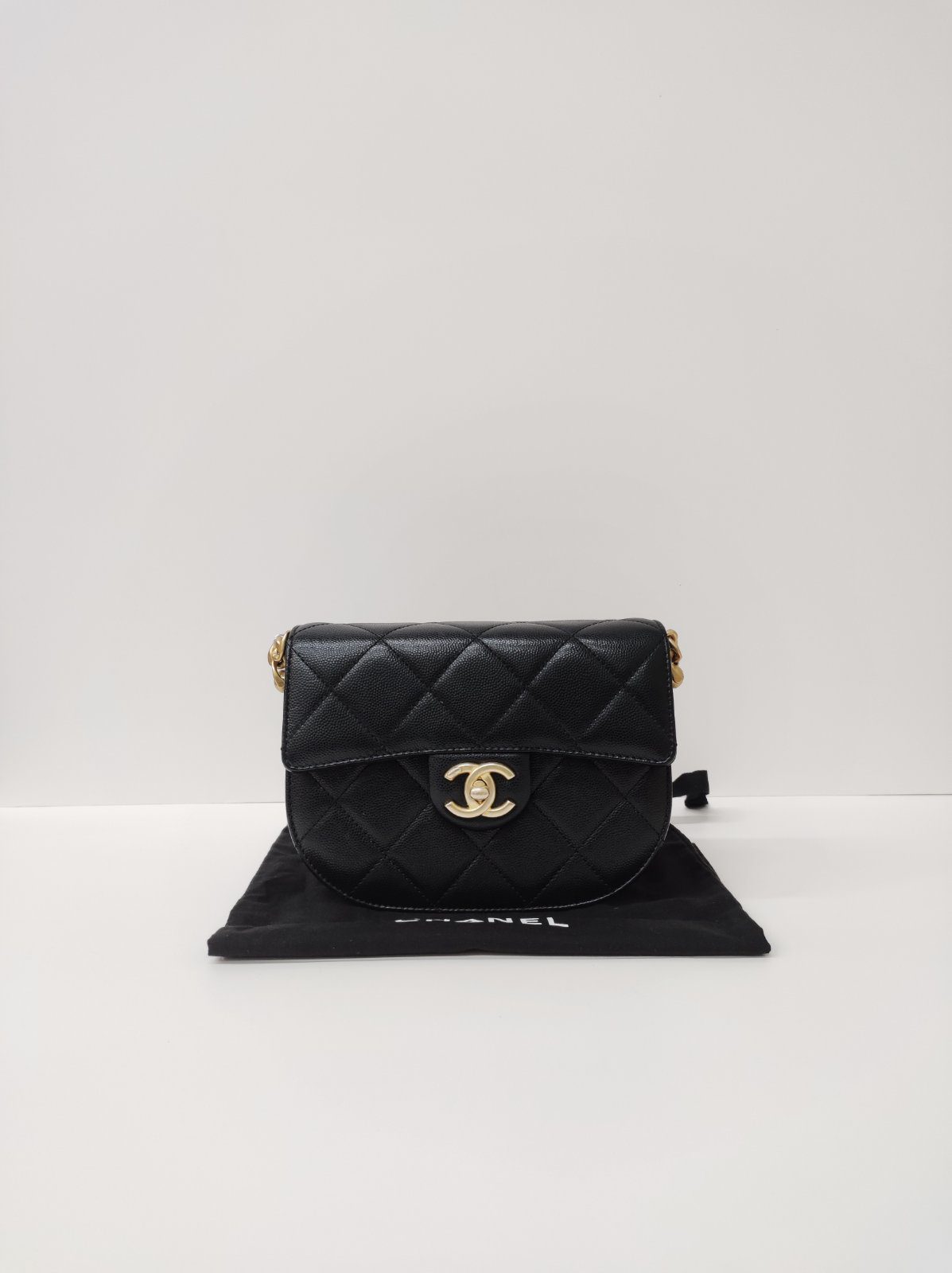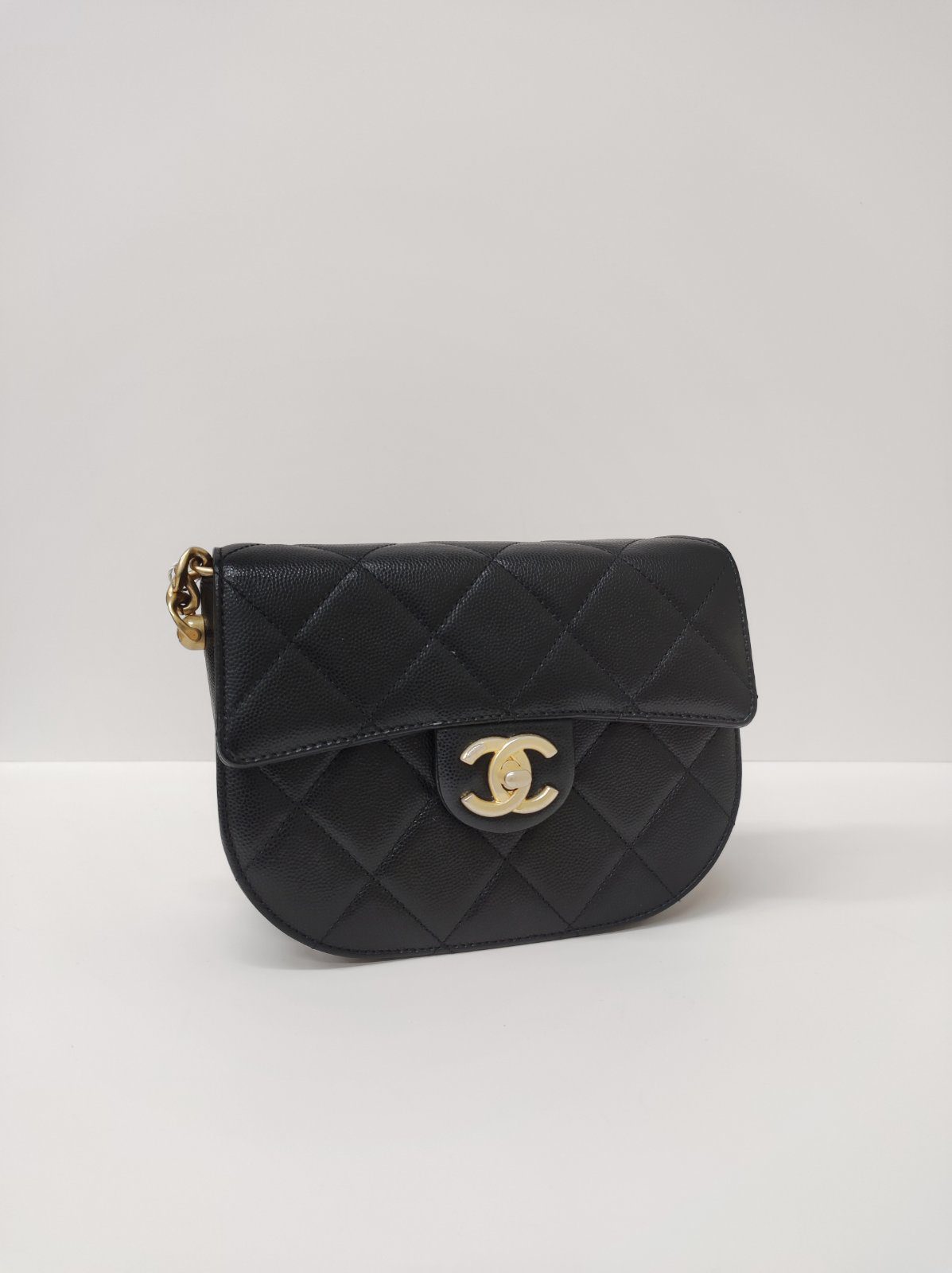 Kept Unused Chanel Caviar Quilted Moon Bag Black GHW Microchipped