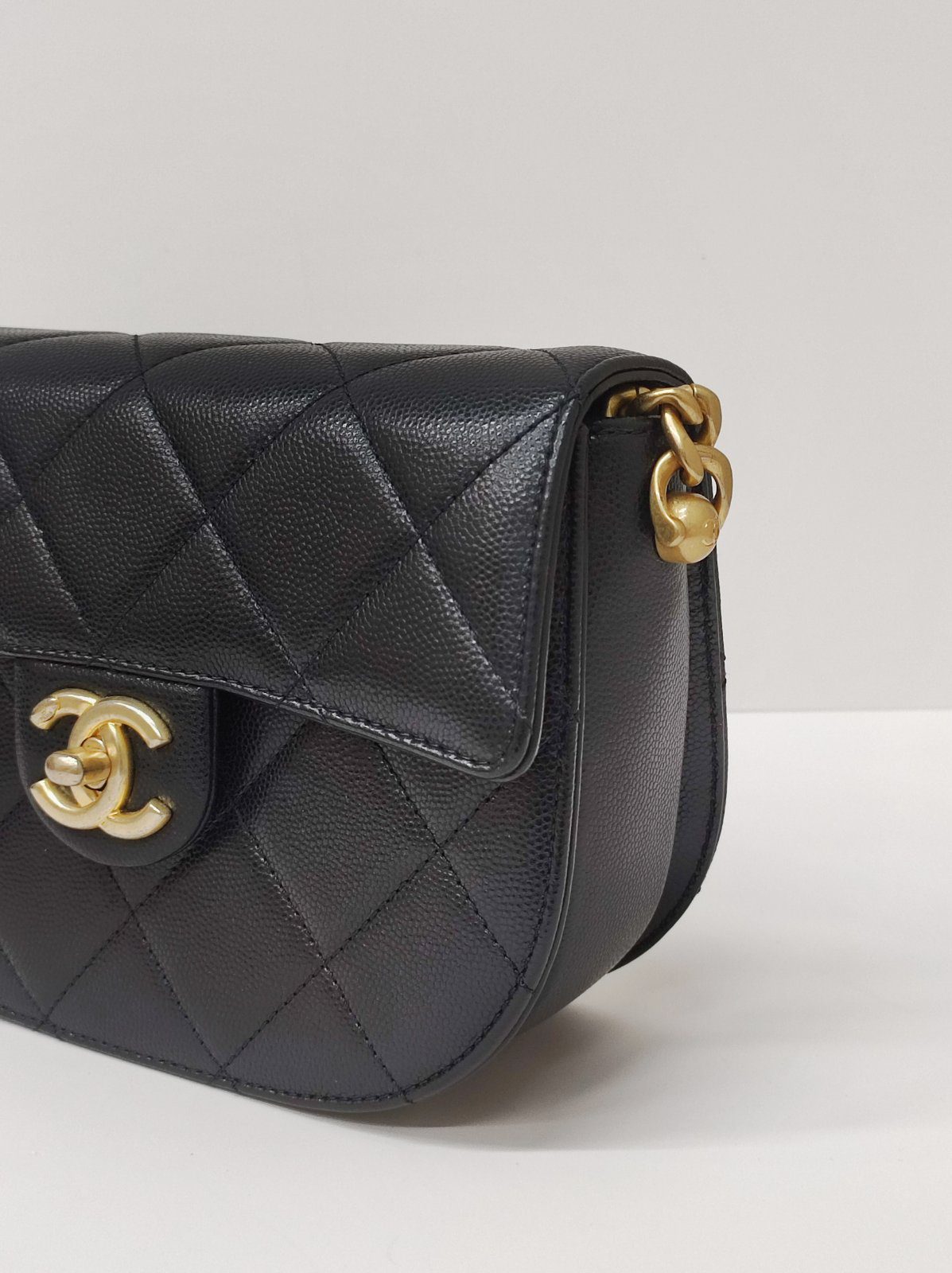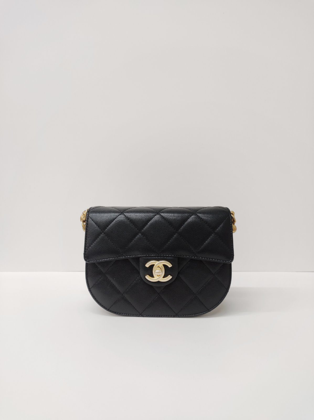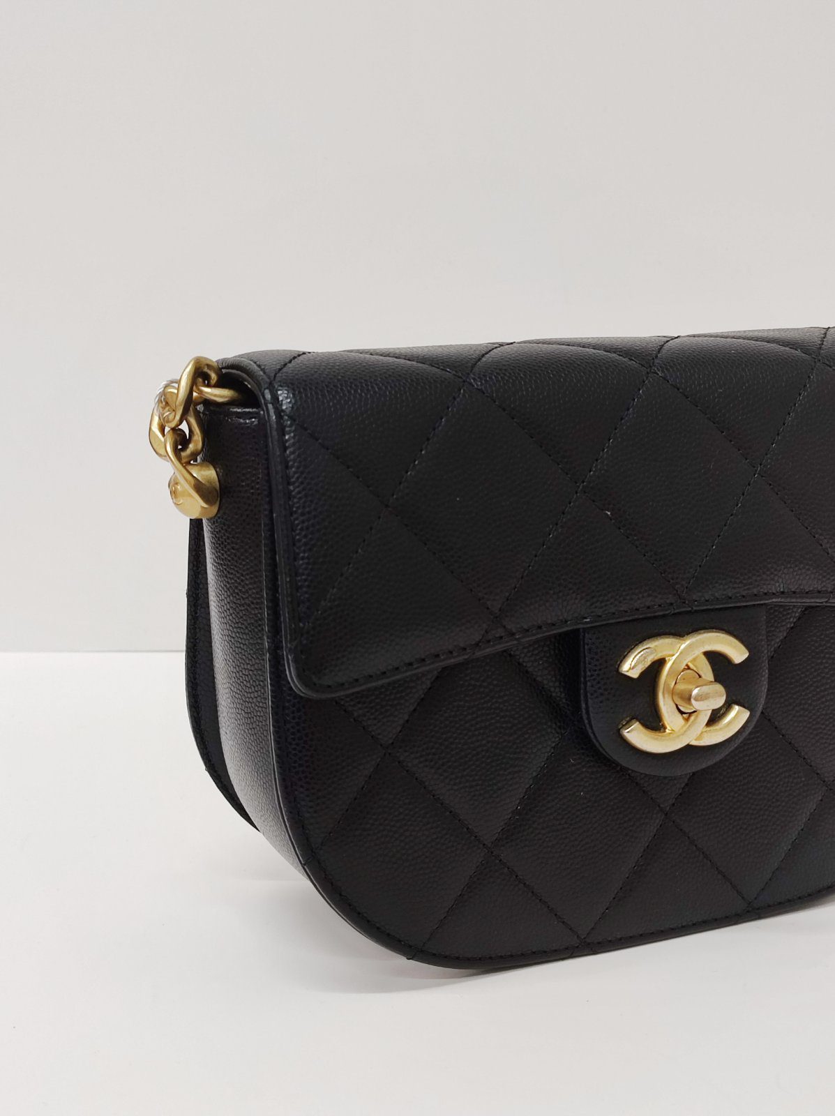 Kept Unused Chanel Caviar Quilted Moon Bag Black GHW Microchipped